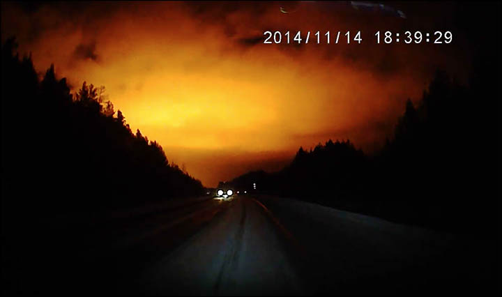 Вот, что написал автор ролика Вячеслав Булатов в пояснении к видео: "В пятницу (14.11.2014) я наблюдал вспышку в небе на дороге по пути в Режов. В новостях об этом ничего не нашел. Кто-нибудь еще видел это? Что это было?"