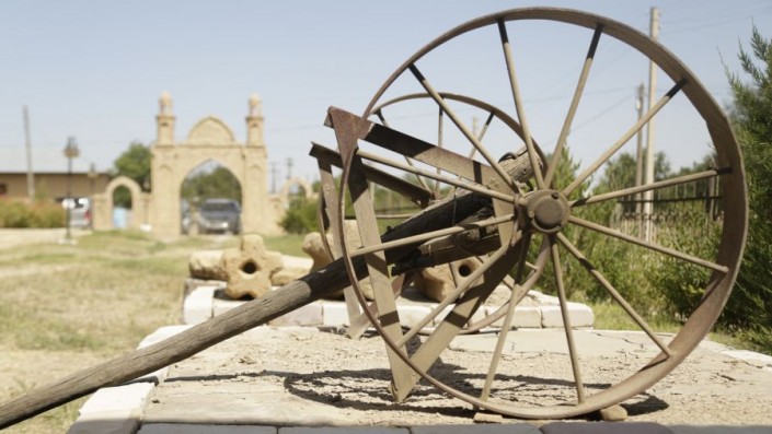 Также можно увидеть следы жизни кочевников в этой местности. Раньше они натягивали ткань на повозку и передвигались на таких телегах с жайляу на кыстау.