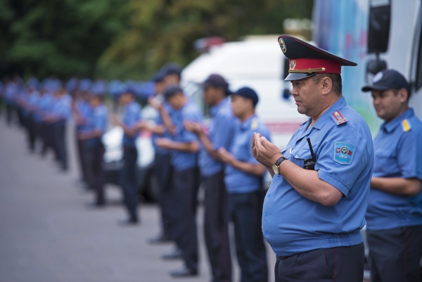 Сотрудники правоохранительных органов на праздничной молитве. Бишкек, Кыргызстан.
