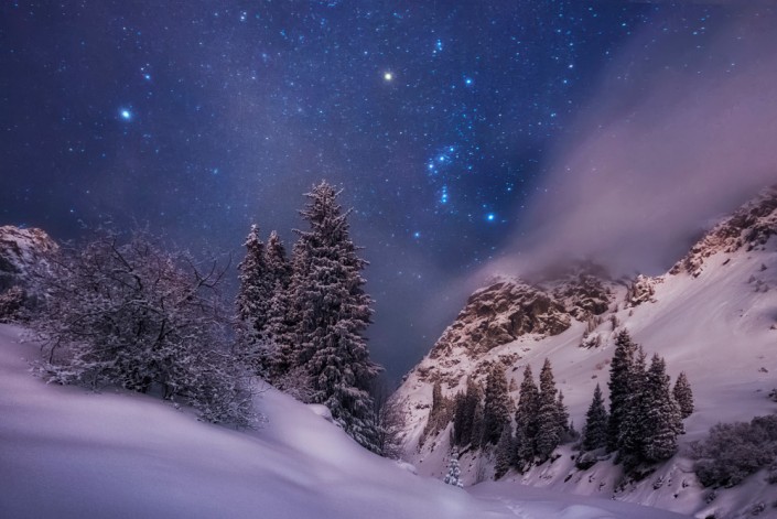Созвездие Ориона. Малое Алматинское Ущелье, Заилийский Алатау. Февраль, 2017 год. © Ольга Кулакова.