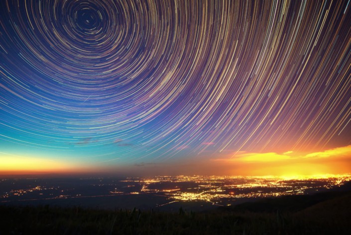 Звездные треки, время выдержки 130 минут. Плато Ушконыр, Алматинская область. Май, 2012 год. © Ольга Кулакова.