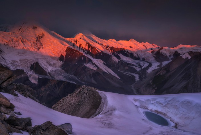 Рассвет на вершине пика Астана (4555м), Ущелье Баянкол, Центральный Тянь-Шань. Август, 2017 год. © Ольга Кулакова.