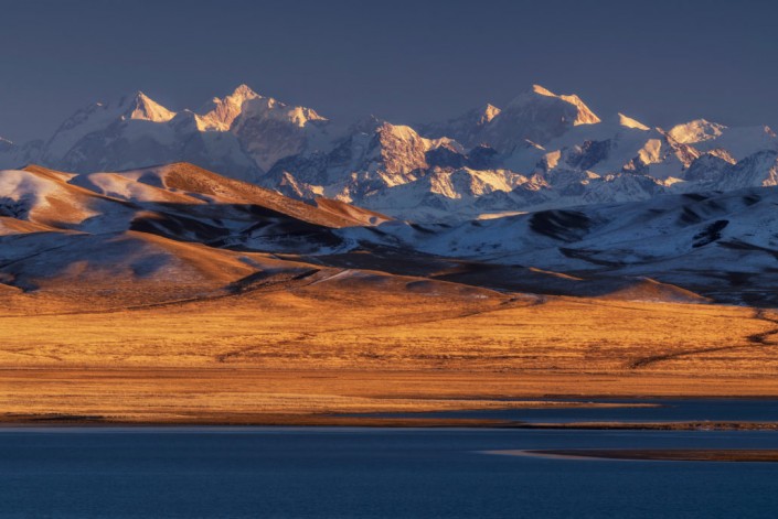 Озеро Тузколь, Алматинская область. Вид на пик Снежного Лотоса (6627 м), Тянь-Шань, Китай. Ноябрь, 2017 год. © Ольга Кулакова.