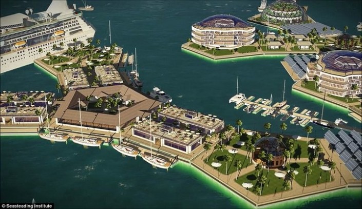 Город построят на расстоянии около километра от берега Французской Полинезии, куда его жители смогут добираться на пароме.
