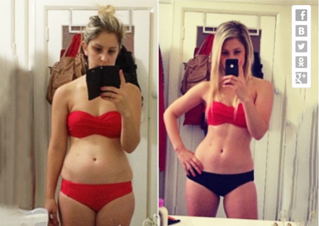25-летняя тренер по фитнесу Mel М из Австралии опубликовала в своем блоге два снимка в стиле "до" и "после", которые демонстрировали успешный результат ее работы над своими формами, пишет AdMe.ru. На одной фотографии девушка с явно не идеальной фигурой, тогда как на другой она заметно похудевшая. Несмотря на то, что таких снимков в Интернете немало, именно этот стал мегапопулярным.
