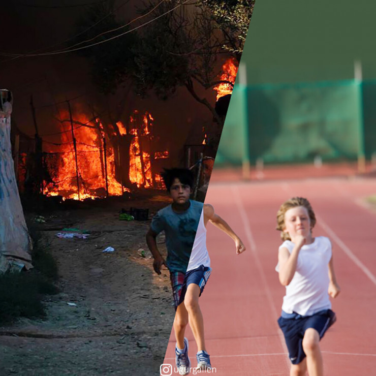 "Я создаю коллажи из двух изображений, соединяя работы самых бесстрашных современных фотожурналистов. Пытаюсь поднять важные проблемы, с которыми сталкивается мир: социальная несправедливость, войны, изменение климата и т. д. Стремлюсь показать контрасты между двумя разными мирами, в которых мы живем", - говорит Угур.