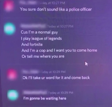 - Потому что я обычный парень. Я играю в League of Legends и Fortnite. А еще я полицейский и хочу, чтобы ты вернулся домой. Или скажи мне, где ты сейчас?