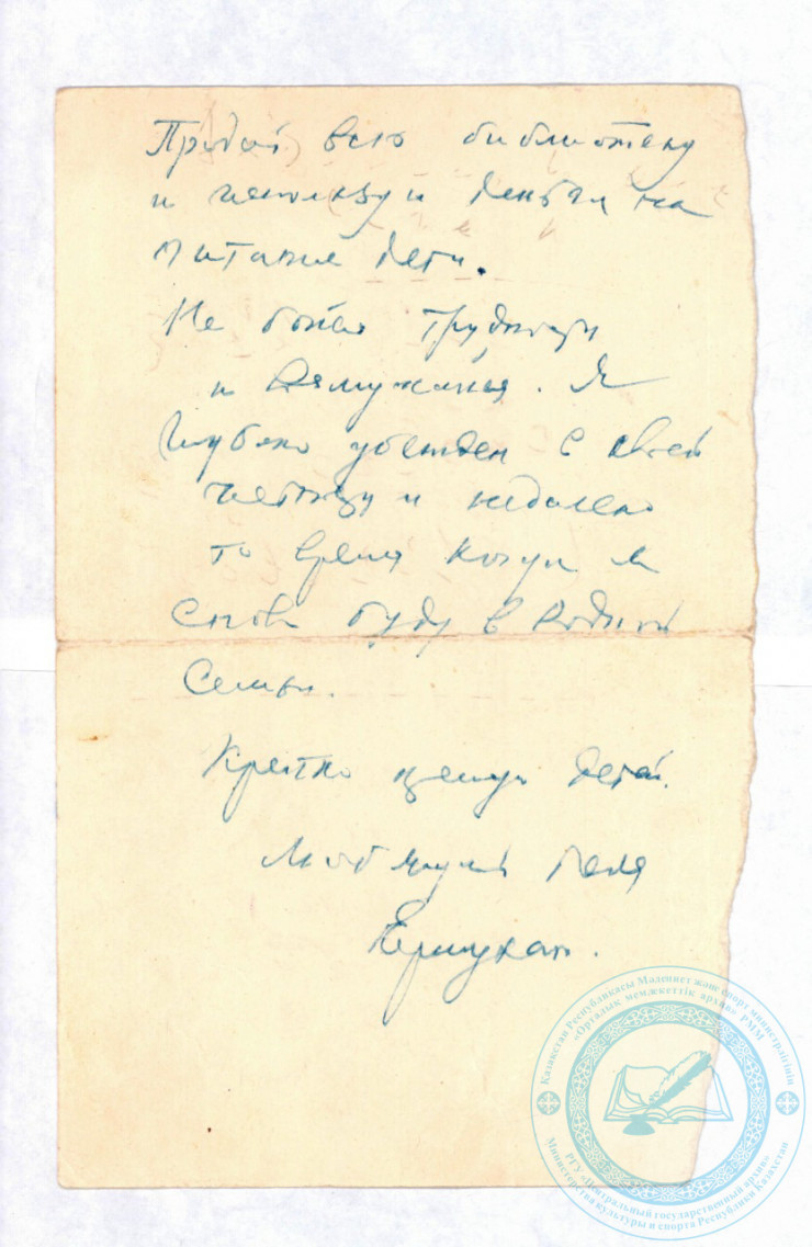 Информация предоставлена З. Тлеубердиной, сотрудником отдела по работе с архивами и историко-документальными коллекциями личного происхождения ЦГА РК