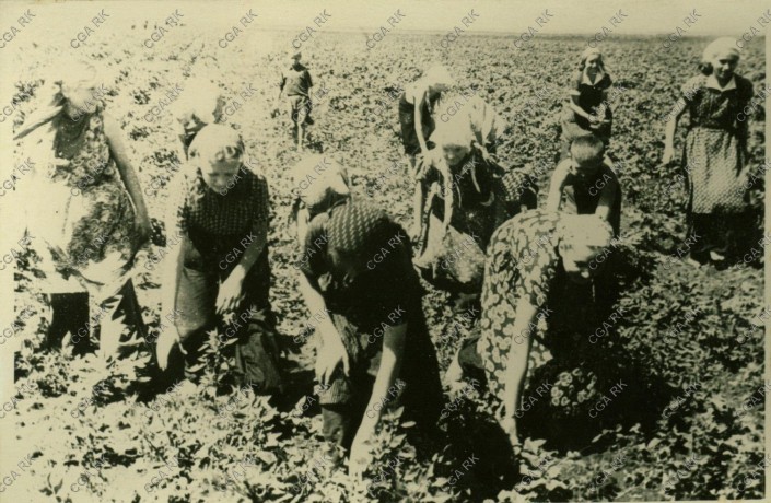 В поле на прополке. Пионерский лагерь Кустанайского обкома профсоюза медработников, 1956 год. Из фондов Центрального государственного архива Республики Казахстан