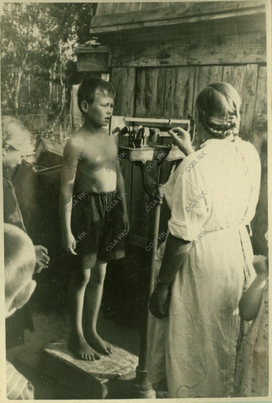 Процедура взвешивания. Пионерский лагерь Кустанайского обкома профсоюза медработников, 1956 год. Из фондов Центрального государственного архива Республики Казахстан