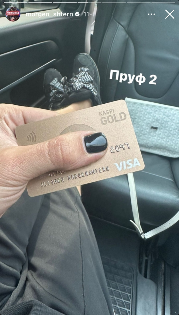На другом фото рэп-певец держит пластиковую карту известного казахстанского банка, где указано имя "Алишер Моргенштерн". На еще одном снимке шоумен стоит перед дверью с табличкой VIP.