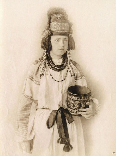 В 70-80-е годы XIX века среди русской интеллигенции проснулся живой интерес к традиционной культуре допетровской России. Многие стали собирать коллекции предметов быта тех времен. Одним из таких коллекционеров стала Наталья Леонидовна Шабельская, прекрасно образованная женщина, жена крупного землевладельца. После посещения вместе с семьей Нижегородской ярмарки в 1870-е годы она, очарованная красотой русской старины, решила организовать собственную коллекцию. Через несколько лет усердной работы Шабельская открыла в Москве "Музей старины". К 1904 году он насчитывал более 20 тысяч экспонатов, среди которых были старинные русские костюмы (крестьянские, купеческие, городские, старообрядческие) всех губерний России, головные уборы, шерстяные и шелковые платки, образцы старинных вышивок, прялки, пряничные доски и игрушки. С середины 1890-х годов сотрудники музея начали фотографировать экспонаты. Фотоколлекция, создававшаяся прежде всего для запечатления предметов одежды, стала самостоятельным феноменом в истории русской фотографии. В роли моделей выступали дочери Шабельской Наталья и Варвара и, вероятно, вышивальщицы из мастерской коллекционера. Основой образов служат сарафан и кокошник. Студийные снимки прекрасно передают выразительный образ русской женщины, а модели удивительным образом гармонируют с костюмами. В настоящее время большая часть этой коллекции хранится в фотоархиве Российского этнографического музея.