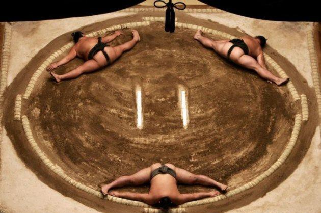 2. Борцы сумо, несмотря на большой вес и габариты, подолгу отрабатывают растяжку. Каждый профессиональный сумотори должен уметь садиться на шпагат.