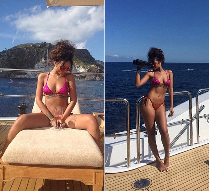 3. Рианна на яхте у берегов Сицилии.