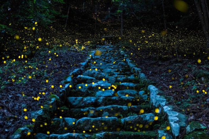 Фотография сделана в один из летних вечеров неподалеку от небольшой деревни в районе Тамба в Японии. Тысячи светлячков летают вокруг дорожки, ведущей к святыне, почитаемой местными жителями.