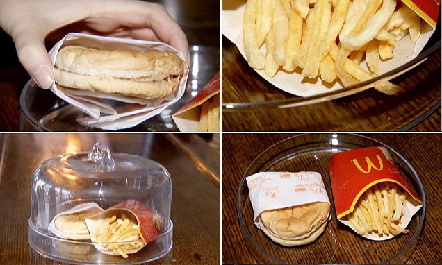 В настоящее время чизбургер-долгожитель и картофель фри хранятся под стеклянным колпаком.