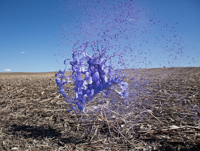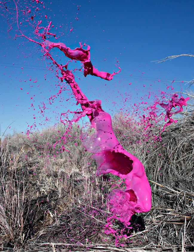 Основатели студии Floto + Warner фотографы Кассандра Уорнер и Джереми Флото представили серию ярких пейзажей Clourant. На фотографиях запечатлены фигуры из застывших в воздухе брызг краски, которые невозможно увидеть собственными глазами: фотографии сделаны при выдержке в 1/3200 секунды.