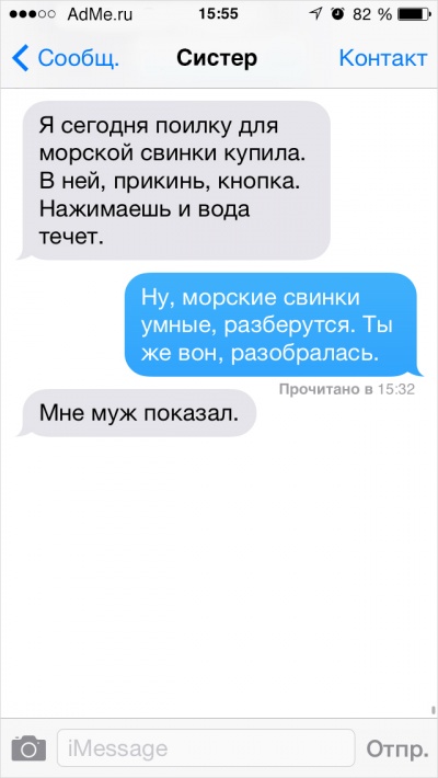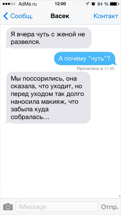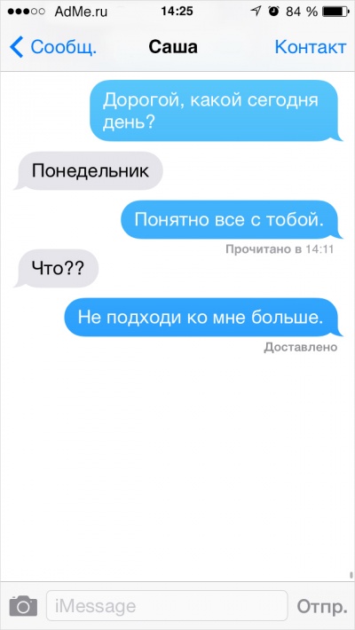 В век мобильных телефонов SMS-сообщения стали неотъемлемой частью нашей жизни. С помощью гаджетов стало намного проще документировать забавные моменты из жизни и делиться ими в Интернете. Сайт AdMe.ru собрал SMS, которые могли отправить друг другу только самые близкие люди - мужья, жены или возлюбленные. Читайте и узнавайте себя.