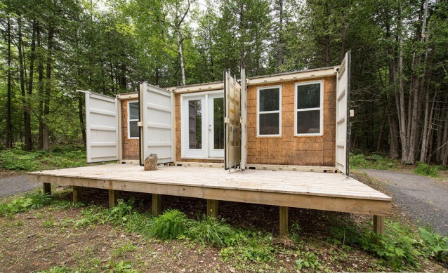 Житель Канады Джозеф Дюпюи построил необычный дом из морских грузовых контейнеров в лесу недалеко от Оттавы. На покупку трех контейнеров у 29-летнего специалиста в области возобновляемых источников энергии ушло 10 200 канадских долларов (около 8,3 тысячи долларов США) и три месяца работы.