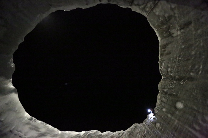Спуститься в воронку летом у исследователей не получалось из-за постоянного обрушения грунта. В этот раз участники экспедиции спустились на глубину в 200 метров при порывах сильного ветра, скорость которого достигала 20 метров в секунду.