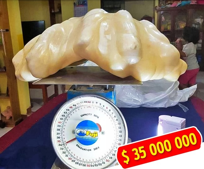 Филиппинский рыбак застрял на скалах возле острова Палаван. Освобождая якорь, он нашел огромного моллюска, а внутри него - жемчужину весом в 34 килограмма. Десять лет рыбак хранил это сокровище под кроватью, пока не случился пожар. Сейчас гигантская жемчужина оценивается в 35 миллионов долларов.