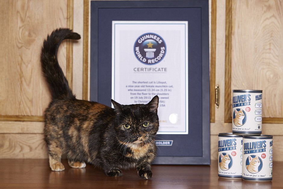 Самой низкой кошкой в мире считается девятилетняя манчкин по кличке Лилипут. Ее рост от пола до плеча составляет чуть более 13 сантиметров.
