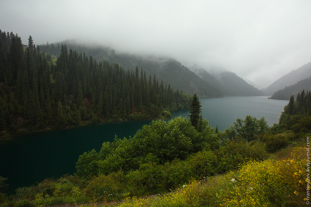 Одно из Кольсайских озер. Озера расположены в 10 километрах к северу от границы с Кыргызстаном, в 330 километрах юго-восточнее Алматы.