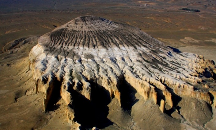 Плато Устюрт - идеальная пустынная равнина, расположенная на западе Казахстана, между Аральским и Каспийским морями. Плато подобно Большому Барьерному Рифу хорошо видно из космоса. Суммарная протяженность цепи устюртских чинков составляет несколько сотен километров.