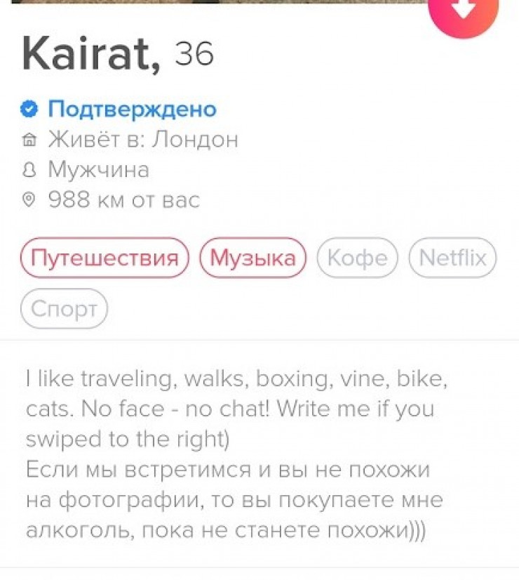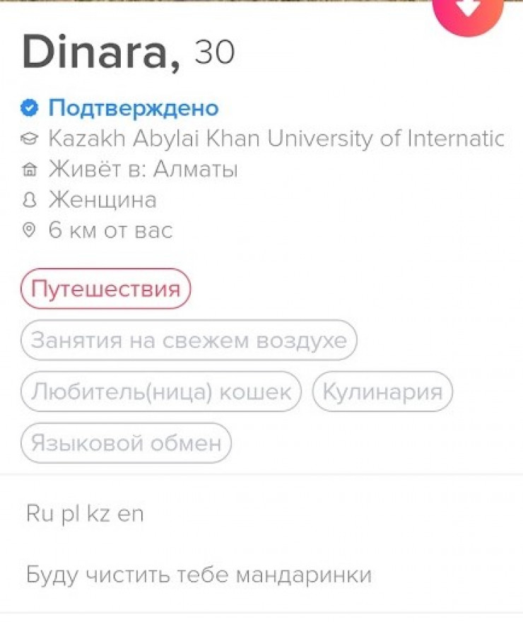 Для кого-то популярное приложение Tinder - это способ завести новые, ни к чему не обязывающие знакомства. Кто-то ищет здесь серьезные отношения и даже находит партнера на всю жизнь. Но если в офлайне, как говорится, встречают по одежке, то в Tinder "встречают" по анкете. Конкуренция большая. Корреспондент TengriMIX решил узнать, насколько креативны казахстанские пользователи.