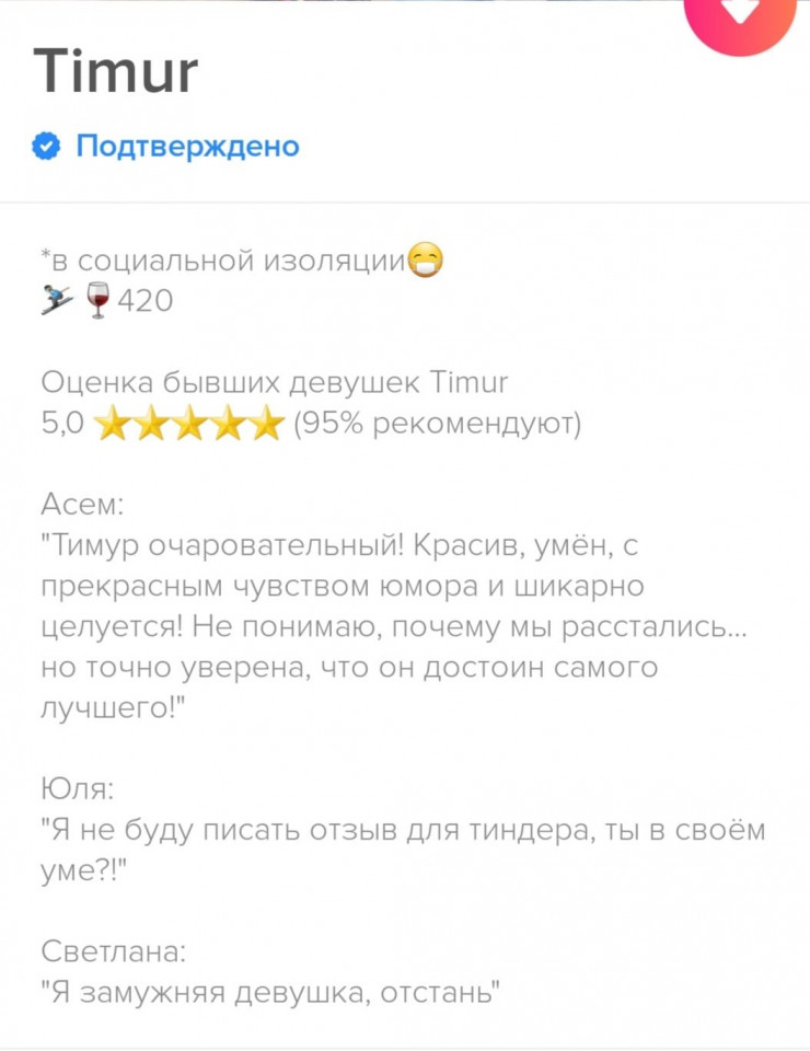 Отличный способ продвижения своей анкеты - система оценок и отзывов от бывших. Анкета оказалась настолько интересной, что алматинка Гульшат посвятила ей пост в социальной сети Facebook.