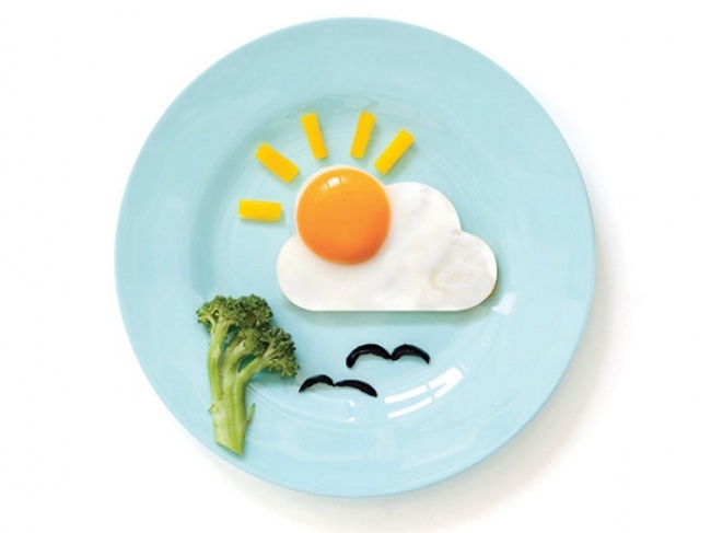 Главное - попасть желтком туда, где должно быть солнце, при этом не разбив, а белок сам растечется и займет оставшееся пространство.