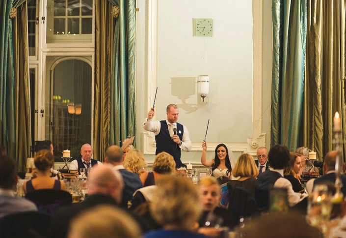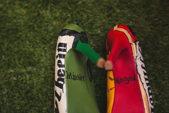 Пара планировала торжество более года, чтобы в деталях воссоздать атмосферу, в которой жил их любимый герой. Лица молодоженов красовались на плакатах из Министерства магии. Каждый из 130 гостей получил волшебную палочку, а подружки невесты держали в руках бумажные букеты, сделанные из 20 разрезанных экземпляров книг.