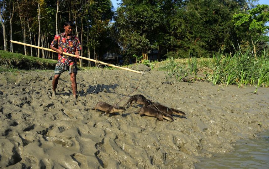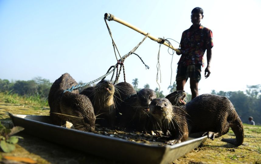 Ловля рыб при помощи выдр - привычный для жителей Бангладеш способ.