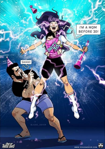 Мы ранее рассказывали о том, что Иегуда создает яркие и смешные иллюстрации, в которых отражает реальные моменты совместной жизни с красавицей-женой Майей. И остановились на том, что муж и жена решили завести ребенка.