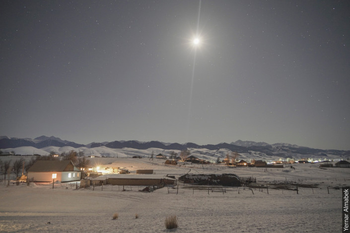 С наступлением ночи аул замолкает. Включаются сотни огоньков в домах жителей.