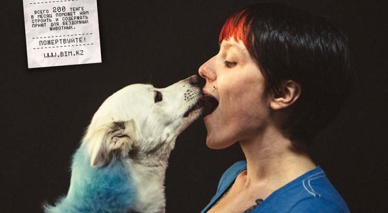 Креативщики рекламного агентства Openeyes DDB решили высмеять шум, возникший вокруг постера с поцелуем Курмангазы и Пушкина и запустили кампанию по сбору средств на содержание приюта для бездомных животных "Белый бим". На своих плакатах они изобразили поцелуй собаки и человека.