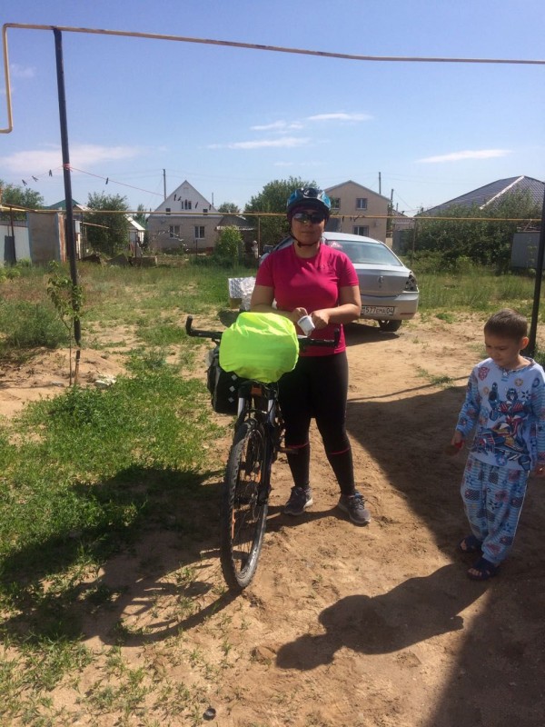 Дело в том, что казахстанка давно хотела увидеть мир. Однажды она поняла, что для осуществления мечты недостаточно просто мыслей, нужны хоть какие-то действия. И она решилась. Взяла да уехала на машине в Актобе к подруге, потом погостила у родственников и рванула на велосипеде в Костанай. По пути она повстречала таких же путешественников - Василия из России и Валерия из Беларуси. Три дня они вместе ехали до Костанайской области, затем разошлись - у мужчин был иной маршрут.