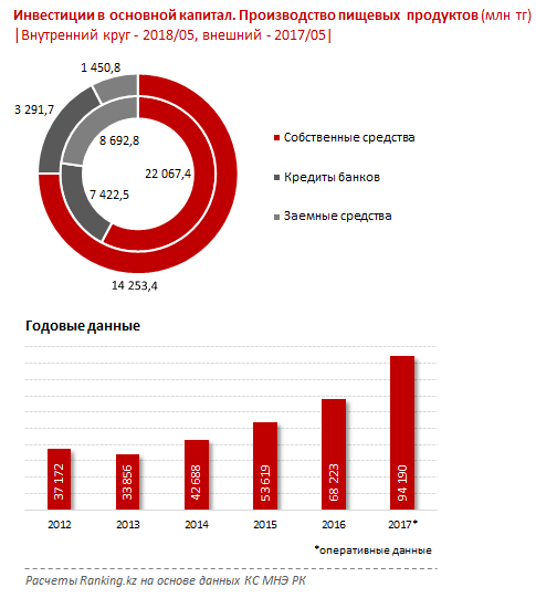 Инвестиции в производство пищевых продуктов по итогам пяти месяцев достигли 38,2 миллиарда тенге - сразу вдвое больше, чем годом ранее, сообщает Ranking.kz. Наибольший объем пришелся на Алматинскую (31,3 процента от РК) и Костанайскую (14,9 процента от РК) области.