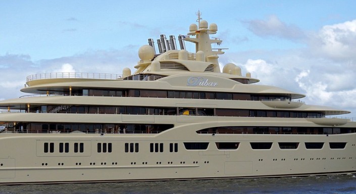 Валовая вместимость (гросс-тоннаж) 156-метровой яхты Dilbar (по имени матери предпринимателя - прим.) составила 15 917 тонн. По длине судно Усманова уступает яхте Azzam семьи шейха Халифы бен Заида Аль Нахайяна (180,6 метра), Eclipse Романа Абрамовича (162,5 метра) и Dubai принца Брунея (162 метра), однако по внутренней вместимости Dilbar на первом месте.