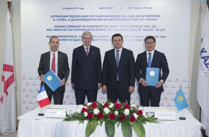 10 апреля 2017 года в Астане в присутствии министра энергетики Республики Казахстан Каната Бозумбаева, председателя совета директоров компании "Арева" Филиппа Варана состоялась официальная церемония подписания важного соглашения между АО "НАК "Казатомпром" и "Арева", направленного на укрепление долгосрочного сотрудничества двух компаний в сфере добычи урана в Республике Казахстан.