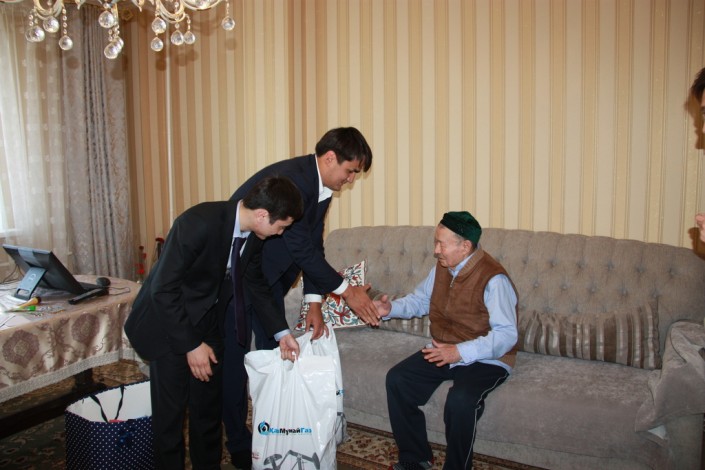 "Мы предлагали организовать общий стол, но потом, посоветовавшись с городским советом ветеранов, решили оказать адресную помощь. Наши сотрудники вручают продуктовые корзины, общаются с ветеранами, выражают свою бесконечную благодарность", - рассказал специалист департамента социальной политики АО НК "КазМунайГаз" Жанибек Нугербеков.