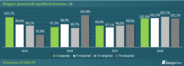 Среднемесячная заработная плата каждого работающего казахстанца в последнем квартале прошлого года составляла 176,1 тысячи тенге - на 7,5 процента больше, чем годом ранее. В то же время с учетом инфляции покупательская способность заработных плат увеличилась к аналогичному периоду годом ранее на 2,1 процента.