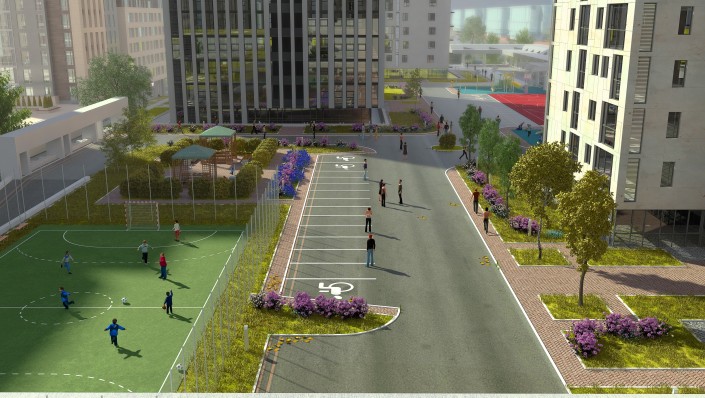 В домах BI Group за стандарт принята концепция "Двор без машин"