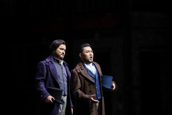 Партию юной, мечтательной, влюбленной в Онегина Татьяны оба дня исполняла Айгуль Ниязова, ее нельзя не похвалить, так как звучала сопрано безупречно. Певица умеет держать фразу на одном дыхании длиннее всякой человеческой возможности. По-актерски все было сделано точно, Айгуль глубоко прочувствовала и передала и легкость, наивность несмелой девочки, и повзрослевшую душой благородную женщину. Ее партнерами по сцене стали исполнители партии молодого ветреного повесы Онегина - Талгат Мусабаев и Сундет Байгожин. Оба артиста произвели незабываемое впечатление: обладатели благородного тембра сумели создать образ эгоиста, который не может полюбить раз и навсегда, а также вокалисты отлично справлялись и с высокими, и с низкими нотами. Талгату Мусабаеву во многом помог огромный опыт в воплощении этого образа на разных сценах мира. Ему рукоплескали в Большом театре (Россия), к слову, Онегина он ранее исполнял и на сцене Красноярского театра оперы и балета. Важно отметить, что для ведущего солиста "Астана Опера" Сундета Байгожина это выступление было особо ответственным, так как в этой партии артист вышел на сцену впервые. Певец демонстрировал великолепный вокал, и казалось, в этот вечер ему не было равных.