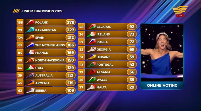 По результатам голосования профессионального жюри и зрителей Ержан набрал 227 баллов. Первое место досталось польской исполнительнице Виктории Габор - 278 баллов. Третье место заняла представительница Испании Мелани Гарсия.