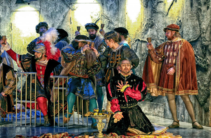 В постановке оперы Верди "Риголетто" известный российский режиссер главным акцентом сделал мотив маски, зловещего маскарада жизни. Верди считал сюжет спектакля лучшим из всех, положенных им на музыку. Впервые в истории жанра героем одной из самых популярных опер великого композитора стал старик-горбун - придворный шут, лицемер, озлобленный на весь мир. Он безжалостно мстит всем, у кого нет горба на спине. Режиссер предложит столичной публике новую версию психологической драмы, по которой придворный шут вовсе не горбун, а язвительный, умный, злой и совсем не старый человек. Горб и маска - всего лишь шутовское обличье, которое он надевает только при дворе герцога. Однако нравственное уродство нельзя скинуть, как маску. Неординарный человек, вынужденный терпеть постоянное унижение, он развлекается интригами, охотно принимает участие в грязных забавах своего господина и его окружения. Судьба наказывает Риголетто за жестокость, превращая в убийцу собственной дочери Джильды.