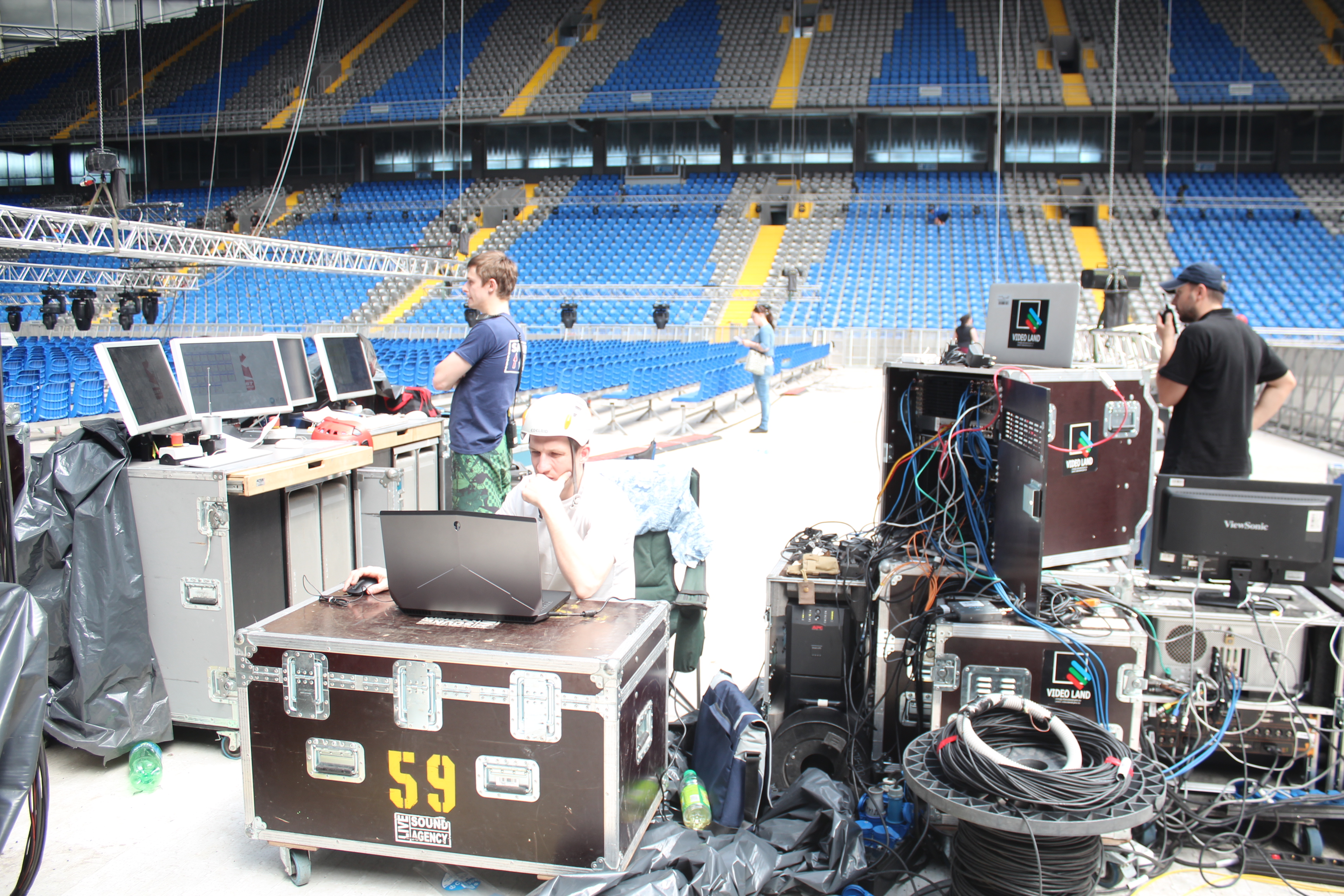 На самом стадионе работа по установке всего оборудования началась еще 24 мая. В Астану из России и Европы приехали почти 50 фур с оборудованием и декорациями. А вместе с ними в столицу прибыло несколько тысяч специалистов: осветители, звукорежиссеры, монтажеры.