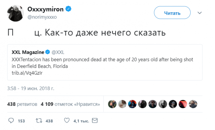 "Покойся с миром X. Бог благословит его семью, друзей и фанатов", - написал он в Twitter.
