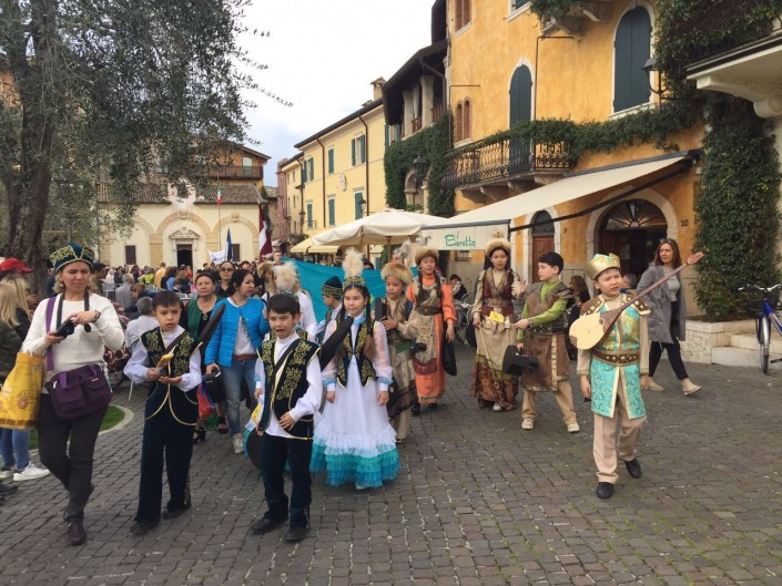 Фестиваль проходил с 1 по 3 апреля в городе Лаго ди Гарда при поддержке мэра. Как рассказала художественный руководитель ансамбля Роза Есбосынова, юные музыканты выступили с тремя номерами - кюями "Акку" Нургисы Тлендиева и "Секиртпе" Абдулхамита Райымбергенова, а также исполнили попурри из народных песен.