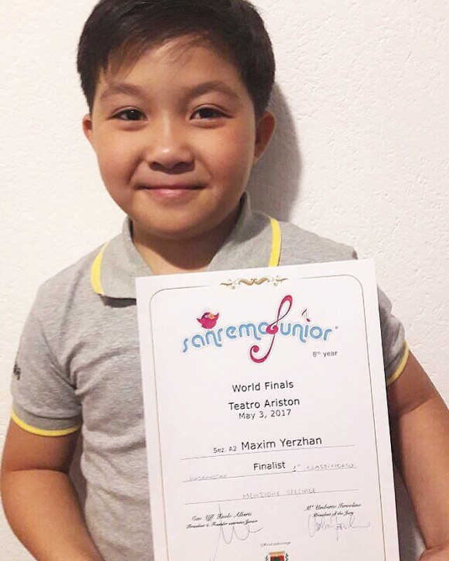 "Он победитель многих областных и республиканских конкурсов, в том числе конкурса "Бозторғай". В прошлом году Ержан завоевал главный приз на фестивале "Дельфин Фест" в Батуми, в декабре он участвовал в аналогичном конкурсе в Латвии сразу в нескольких номинациях, где завоевал две золотых и одну серебряную медаль. 3 мая он вживую с симфоническим оркестром театра выступил на фестивале San-Remo junior в Италии. Поддержку нам оказал аким области, он помог найти спонсора на поездку. Итоги огласили 6 мая. Ержан завоевал первое место", - сообщила мама.
